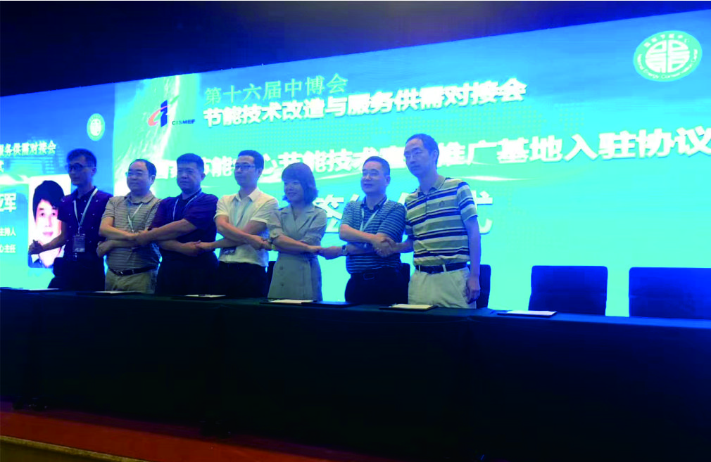 公司董事長陳程(左二)在第十六屆中博會節能技術改造與服務供需對接會上簽約留影